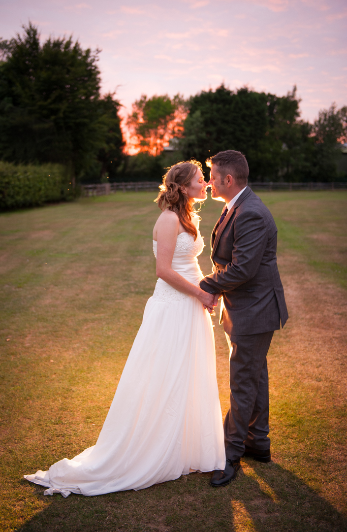 wedding, bride & groom at sunset