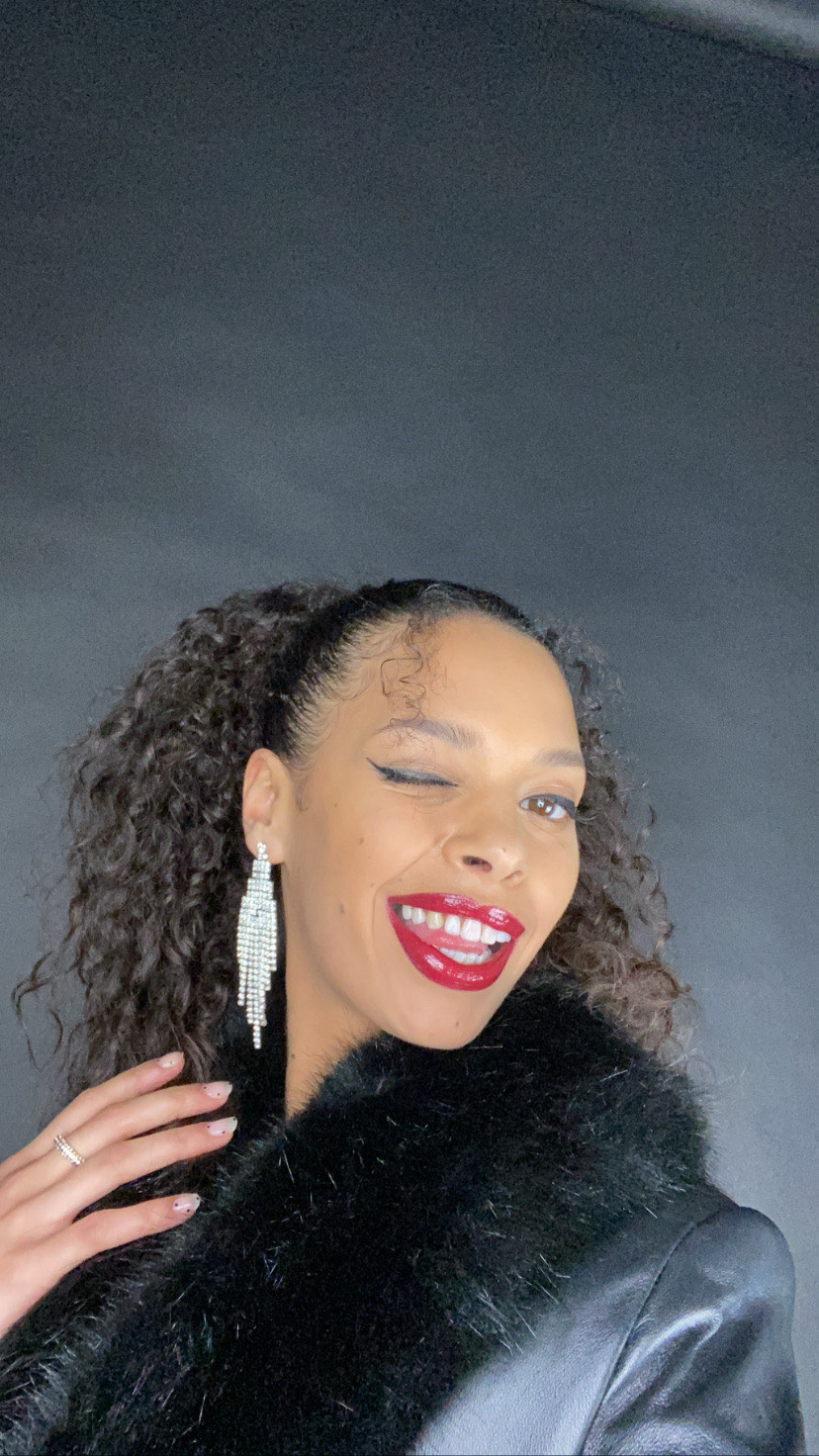 Perfect skin and glossy red lips
