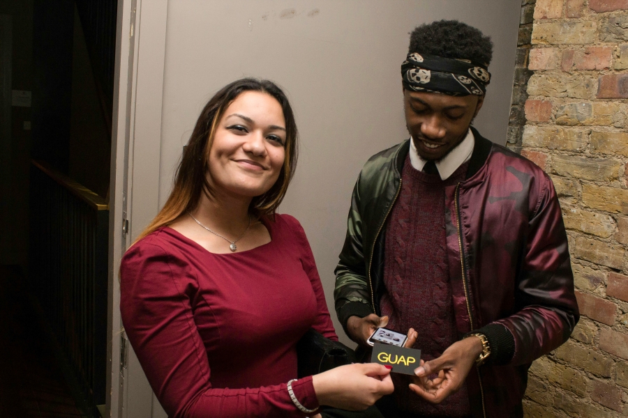 This is an image of events organiser and owner of the brand #vibezwithus who goes by the name of " Miss Hindz " captured networking with Co-founder of " Guap Magazine "