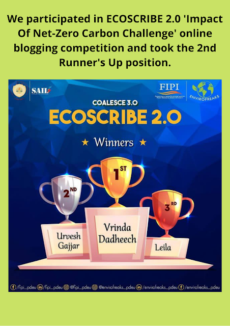 Participated in ECOSCRIBE 2.0 online Blogging competition organized by FIDI PDEU and took the 2nd Runner's Up position.