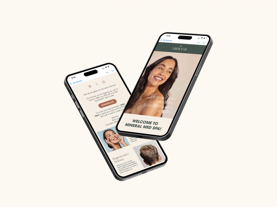 Mineral Med Spa came to me with a bold vision: to merge the indulgence of a luxury spa with the innovation of regenerative science, delivered with the convenience, privacy, and discretion of in-home treatments. We built their brand from the ground up, creating a refined yet approachable identity and rolling it out across a mobile-optimised website, service brochures, email templates, social media, and advertising. The result is a cohesive presence that positions them as Marin County's first mobile med spa -- offering breakthrough treatments in the most comfortable and luxurious setting of all: your own home.