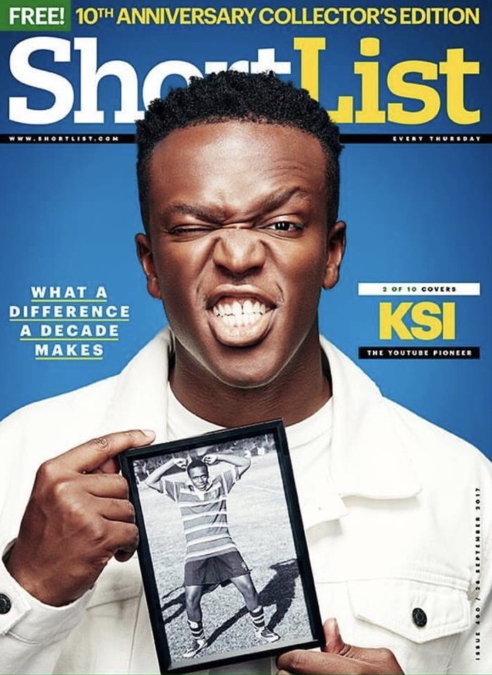 Shortlist Magazine 10th Anniversary cover featuring YouTube sensation KSI.